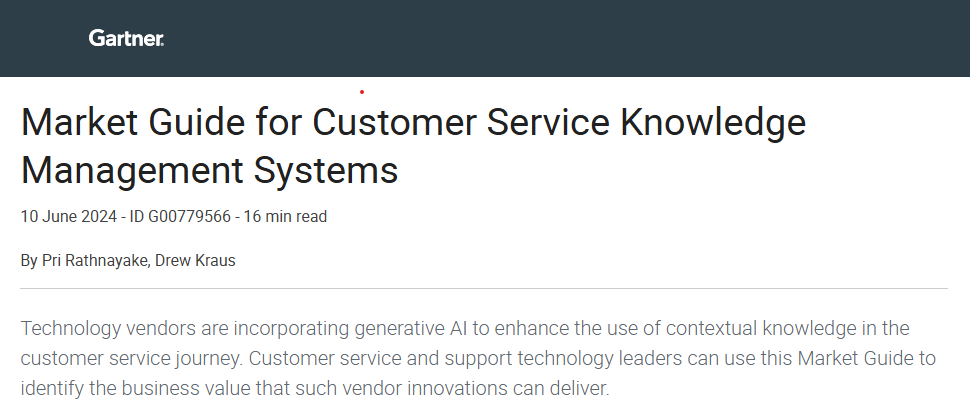 Gartner Market Guide for Customer Service Knowledge Management Systems